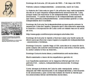 Es muy lamentable que se le ignore por ser anexionista cubano, tanto antes como después de 1959 ¿Dónde está algún monumento de Domingo de Goicuria para ser recordado tanto en US como en Cuba?